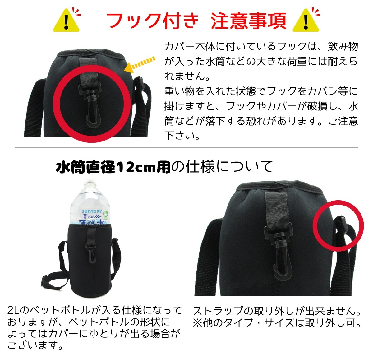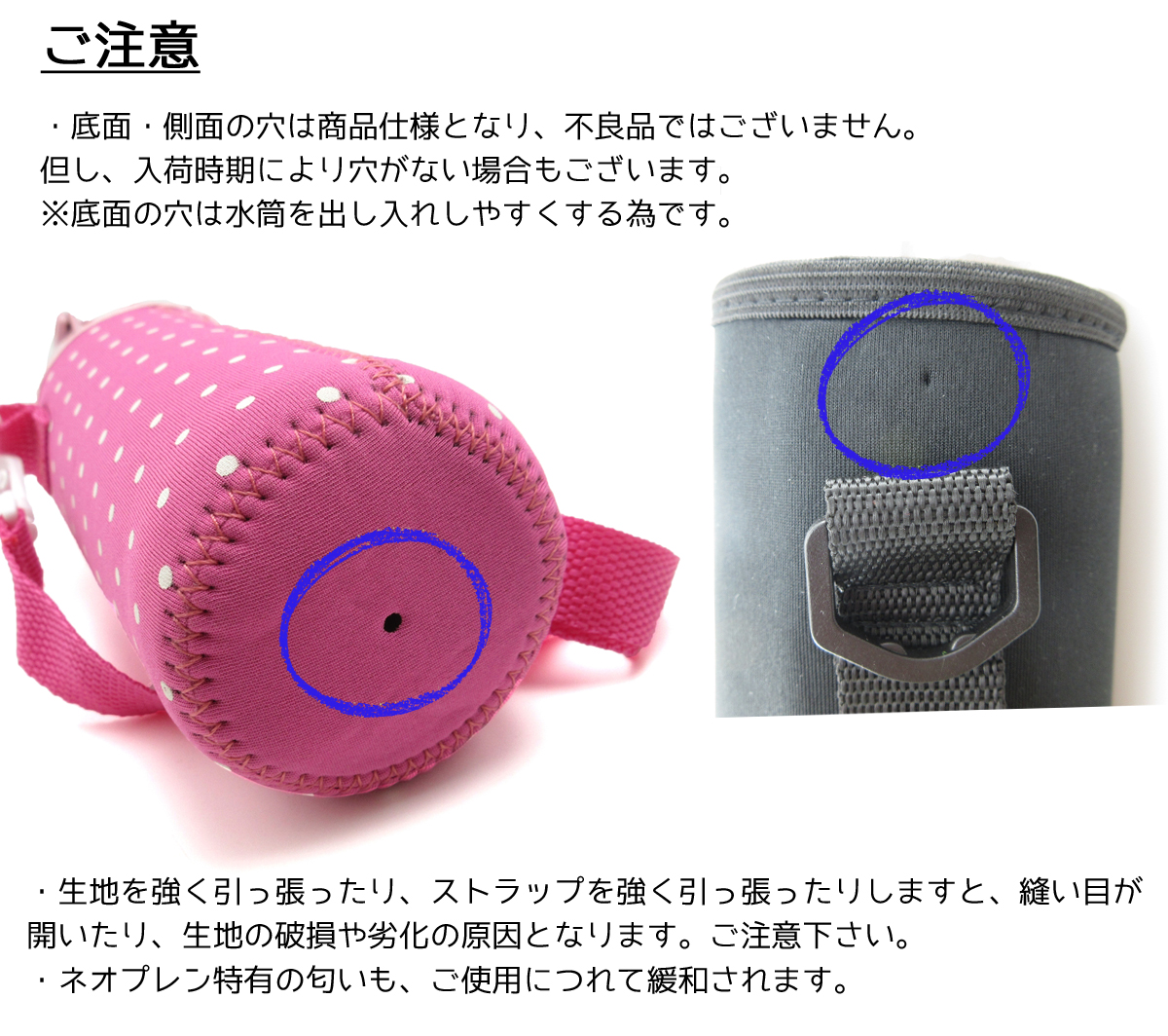 カバー底面に穴が開いている事がございます。水筒を出し入れしやすくする為であり、不良品ではありません