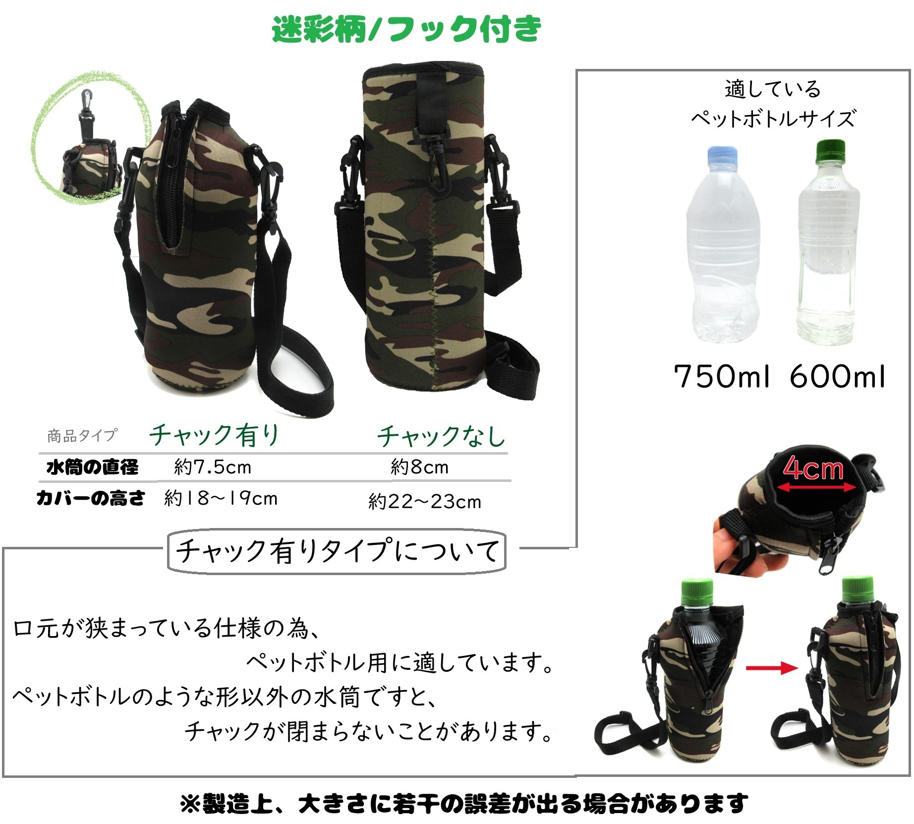 水筒底の直径と、底面〜キャップ下までの高さを測ってからカバーをお選び下さい