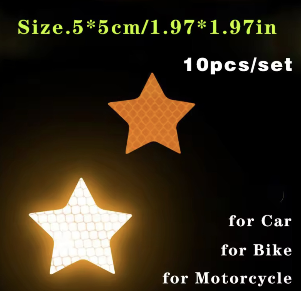 星形リフレクターシールセット - 商品説明: 夜間視認性を高める星形のリフレクターシール。簡単に貼れて、安全対策に最適。防水性もあり、屋外での使用に適しています。