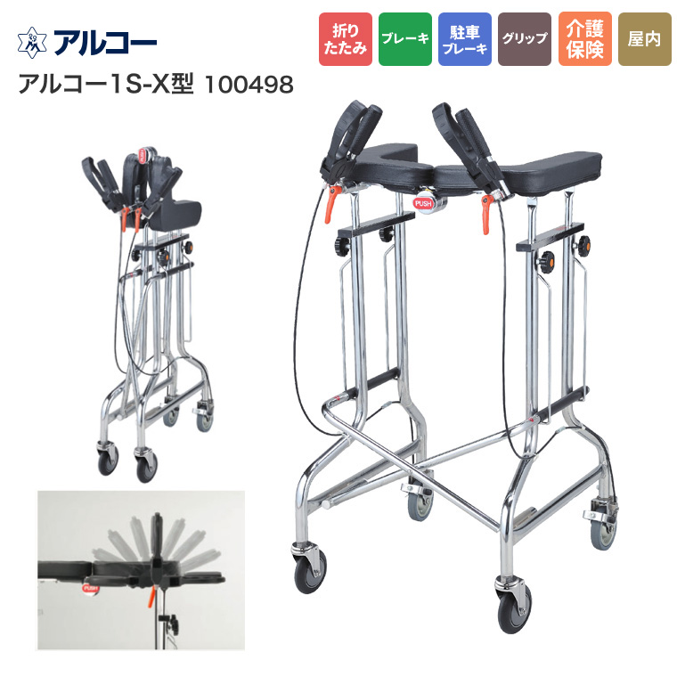 歩行器 介護用 折りたたみ式歩行器 アルコー1S型 100415 星光医療器製作所 │ 歩行器 歩行補助 歩行訓練 手押し車 リハビリ トレーニング 折りたたみ コンパクト