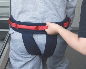 ・腰部と両肢にベルトを通すので体重が分散されるため、被介護者も介助者も、お互いの負担が軽減され、安全に介助することができます。