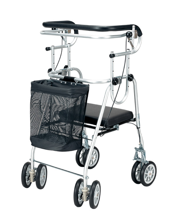 ●標準機能/折りたたみ式、ハンドル高さ調節(4段階/5cm)、前輪ロック式キャスター