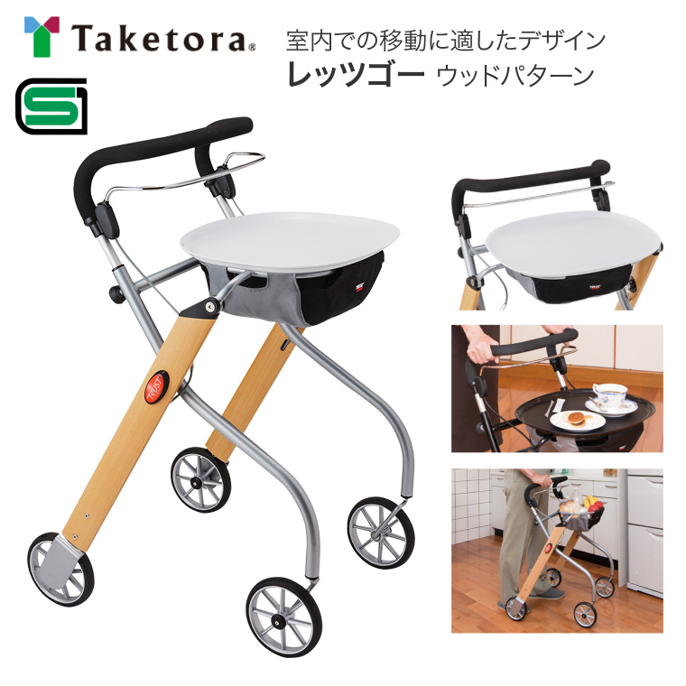 竹虎 歩行車 レッツゴー 117500 ウッドパターン 竹虎ヒューマンケア │ 歩行補助車 歩行器 キャスター付き 手押し車 高齢者 お年寄り 老人 介護用品 おしゃれ