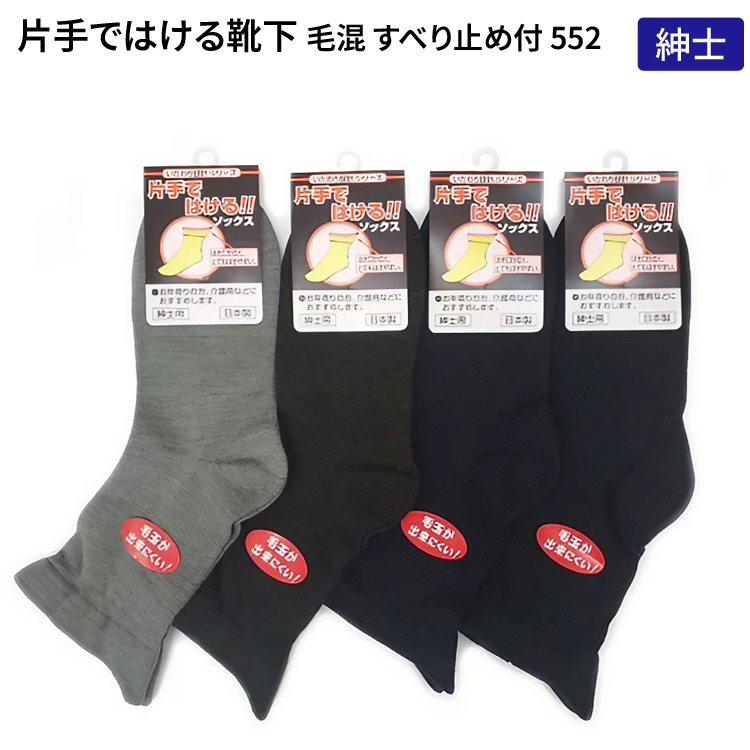 靴下 滑り止め ソックス メンズ 人気 すべり止めくつ下 片手ではける靴下 毛混 すべり止め付 紳士用 552S 桑メリヤス メール便 │ 高齢者 介護 シニア 男性