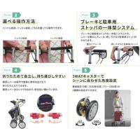 ●標準機能/折りたたみ、3WAYキャスター(360°・左右60°・固定)、手元ブレーキ、駐車ブレーキ、座面、杖・傘立て