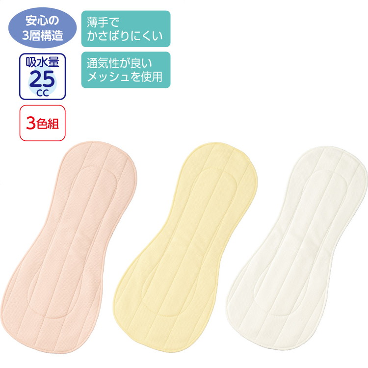 失禁パッド 安心パッド(3色組) 33×14cm 39659 ケアファッション │ 軽失禁パッド 尿パッド 3色セット お得なセット 介護用品 尿漏れ 尿もれ 尿モレ おもらし
