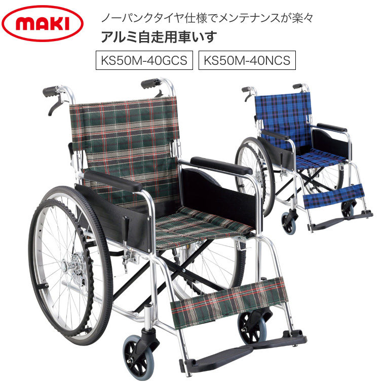 車椅子 自走 折りたたみ アルミ自走用車いす セレクト KS50M(ノーパンクタイヤ仕様) KS50M-40 マキテック │ アルミ製 自走式 自走タイプ 高齢者 介護用品