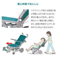 ●標準機能/リクライニング、ひじ掛け跳ね上げ、フットレスト着脱、フットブレーキ