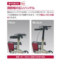 ●サイズ/幅48×奥行65×高さ74〜96.5(10段階/2.5cm)cm、折りたたみ時:幅27×高さ74cm、座面:幅34×奥行22cm、座面高:47cm、ハンドル内幅:32.5cm