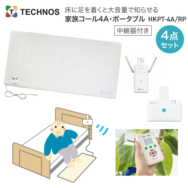 徘徊感知器 コールマット 家族コール4A・ポータブル(中継器付)HKPT-4A/RP テクノスジャパン | 離床センサー センサーマット 介護用品 病院 施設 転倒 抗菌