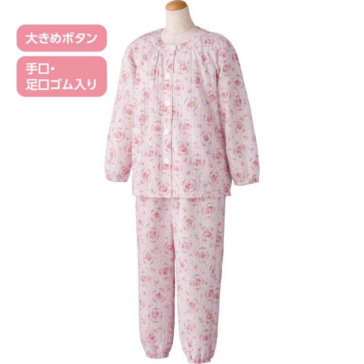 パジャマ レディース 秋冬 大きめボタンプチサイズキルトパジャマ 800708 S M L LL ケアファッション │ 寝巻き ねまき 女性 婦人 ミセス シニア 介護