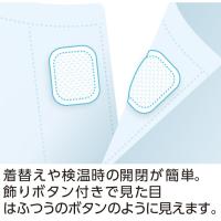 ・ワンタッチテープで着替えや検温時の開閉が簡単。飾りボタン付きで見た目はふつうのボタンのように見えます。
