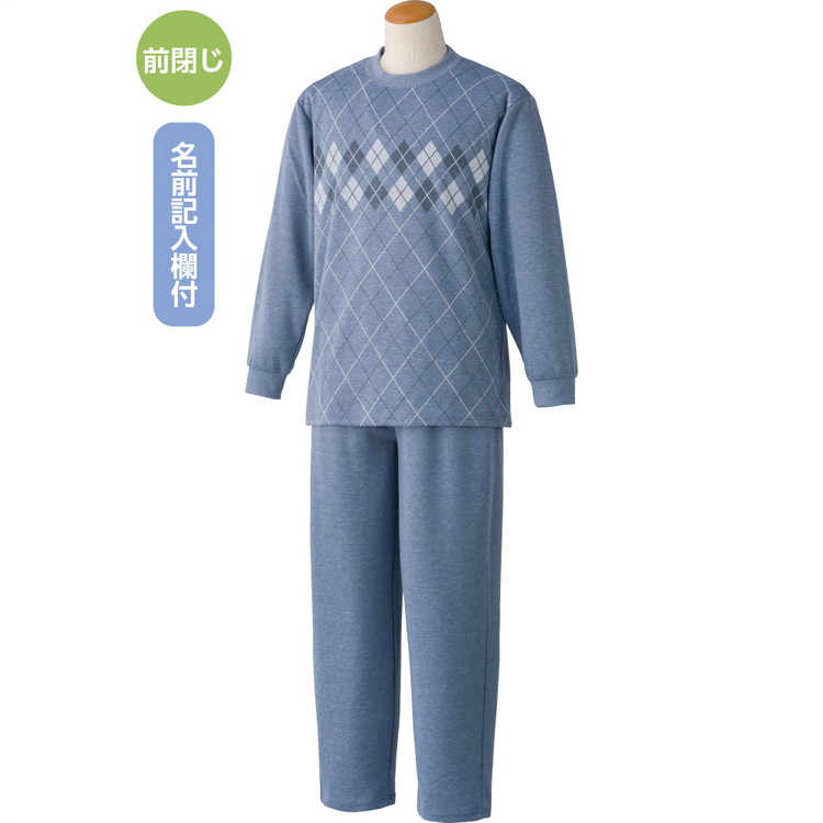 ルームウェア メンズ 長袖 ダンボールニットルームウェア 800746 M L LL ケアファッション │ 部屋着 パジャマ カジュアルウェア 男性 紳士 シニア 大人 高齢者