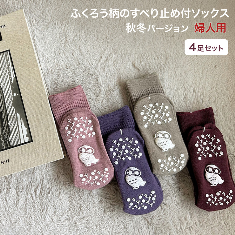 | すべり止め付リブソックス 福(ふくふく) 婦人用 秋冬タイプ (4足セット)