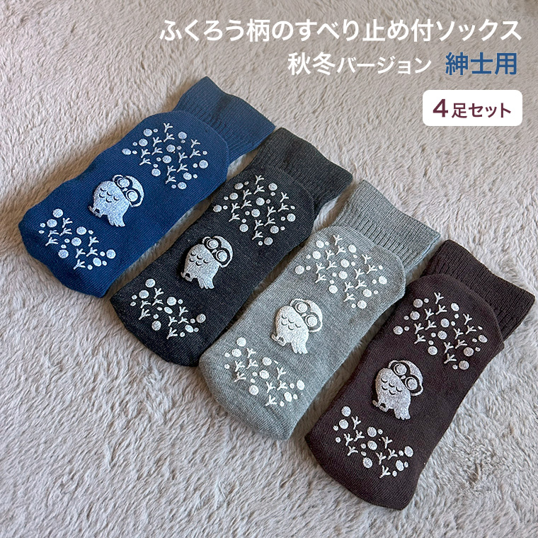 | すべり止め付リブソックス 福(ふくふく) 紳士用 秋冬タイプ (4足セット)