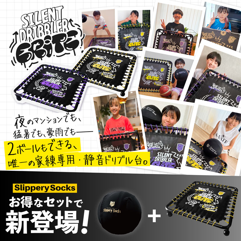 【プロバスケットボールチーム監修】B.LEAGUE所属「ライジングゼファーフクオカ」×RankUpSports 試合で差がつく家庭での自主練をサポートするSilent Dribbler 「Elite」登場。 「やる気はある。でも家での練習が”続かない・できない――。」そんな選手たちのメンタル面での成長もプロチーム監修の「Silent Dribbler Elite」が全力サポート。 【夜でも安心!足音より静かな38デシベル!】バスケットボールのドリブルの音は想像以上に周囲に響くため、練習中に近隣から騒音クレームが来ることも。 特殊なトランポリン生地+吸音設計でバウンド音を最小限に抑えながら、家練でもリアルなドリブルを再現。 【実践を想定した広さと構造】 広すぎず狭すぎない、実践をイメージした絶妙なサイズ。 面積が広いので練習できるドリブルのレパートリーも多く、ボールがこぼれにくいから自分のレベルに合わせて幅広い練習に集中して取り組める! 【さらに進化した安定性】 大人が乗っても破れない高耐久生地。びくともしないスチール製の低重心フレーム。ハードな練習にもながーーーく耐えられます。 【いつでもどこでも練習可能】 「雨の日」「真夏日」「夜中」「兄弟が寝ているとき」 音に配慮して室内でボールが使えれば確保できる練習時間はグンと増えます。 テレビを見ながらの”ながらドリブル”や、リハビリ中の軽いトレーニングにもぴったり。スキマ時間活かして、毎日の積み重ねができるドリブル台です。 【カンタン・安心!組み立て・カスタム!】 ほぼ組み立てが完了した状態でお届けします。 箱から取り出して脚の取り付けが済んだらスグに使用可能!工具不要で、組み立てが苦手な方にも安心な「説明書&動画案内」付き! 【好きなカラーでモチベUP!】 替えマット(別売)購入はこちらから 替えラバー(別売)購入はこちらから 「イエロー×パープル×ブラック」の好きなカラーを自由にカスタマイズ可能! |