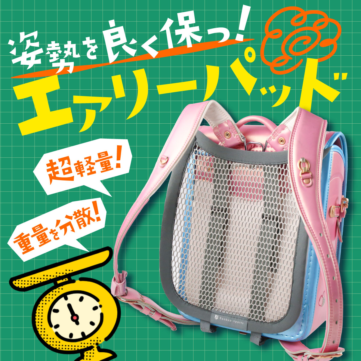 | 【姿勢を良く保つ】ランドセルの重さで体に負担がかかっているのではと心配ですよね。前かがみになり、猫背になりやすいのも気になります。エアリーパッドはランドセルに取り付けるだけで、メッシュのカーブが背中を押す作用で、背筋が真っ直ぐの姿勢を保ちやすくなります。 【装着感を忘れる軽さ】軽量設計によりランドセルに装着しても重さを感じにくく、お子様の負担を最小限に抑えます。背中にぴったりフィットし、動きやすさを損なわない設計です。装着も簡単で、手軽に取り付け・取り外しが可能です。毎日の通学をより快適にサポートします。 【肩の負担を軽減】重量を背中にも分散するデザインにより、ランドセルが肩に食い込む辛さを軽減します。弾力性のあるメッシュ素材がクッションとして働き、ランドセルの重さを分散。荷物が多い日でも、肩や背中にかかるストレスを軽減してくれます。 【目立たない色味】どんなランドセルにも自然に溶け込むシンプルで落ち着いた色味を採用しています。目立たないデザインで、装着時にもランドセルの見た目の美しさを損ないません。機能性だけでなく、デザイン性も兼ね備えた一品です。 |