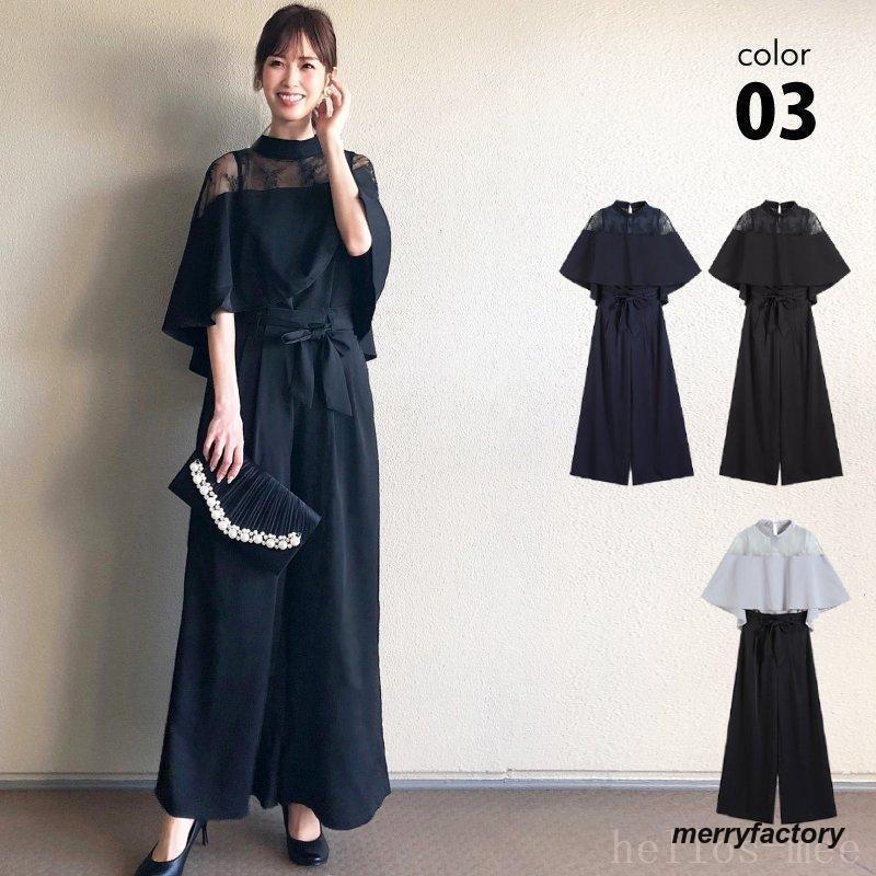 ドレススーツセットワイドパンツケープレース春夏秋パーティードレス