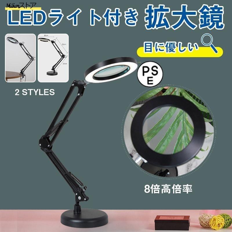 スタンドルーペ 拡大鏡 クリップ式 台座式 ライト付き 虫眼鏡 大きい 作業用 8倍高倍率 デスクルーペ アーム 読書用 両手が使える 敬老の日