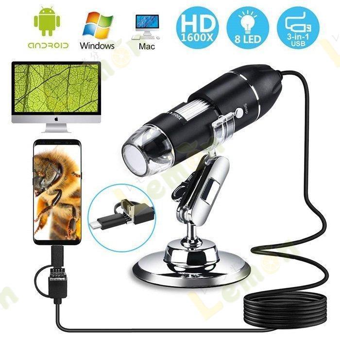デジタル顕微鏡 3-in-1 USB式顕微鏡 マイクロスコープ 最大1000倍率 LED搭載 ジタルマイクロスコープ スマホ/PC対応 電子顕微鏡 カメラ 拡大鏡