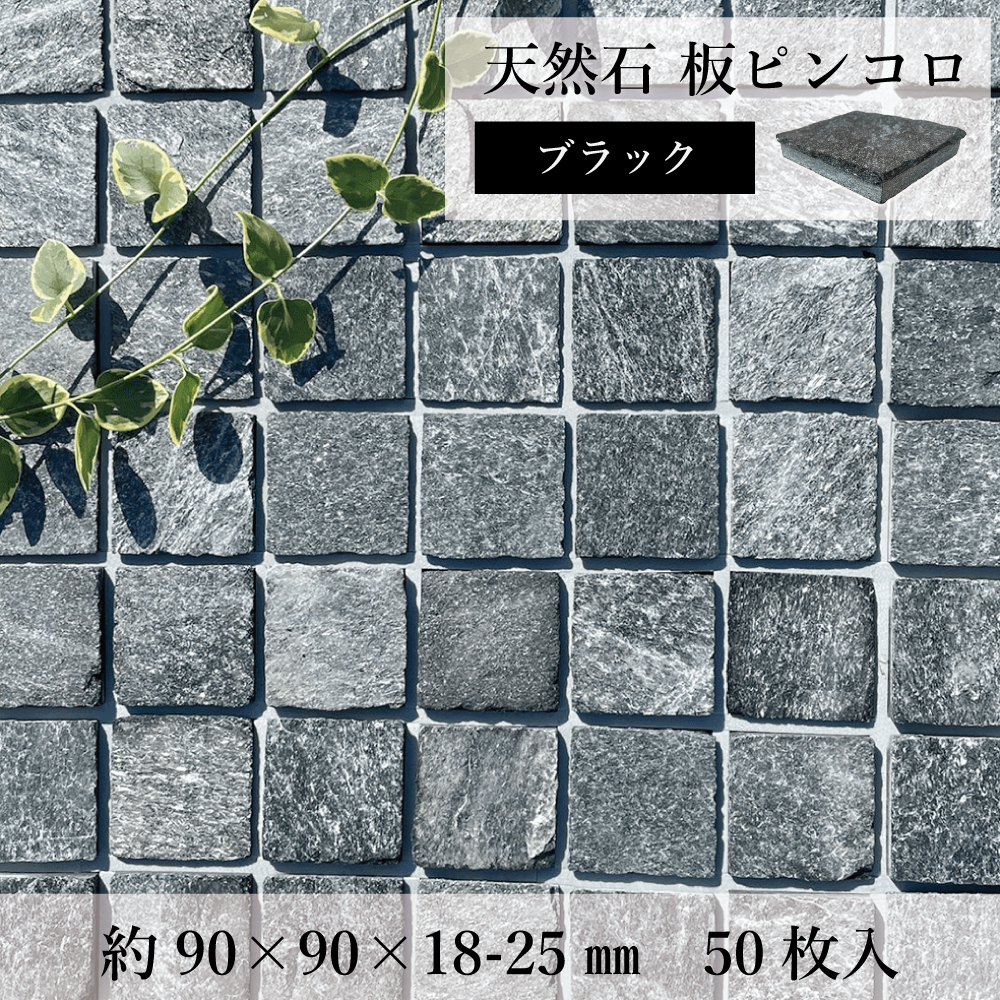 ピンコロ 敷石 黒 板ピンコロ ブラック 50枚入り ガーデンクリエ 天然石タイル マットブラック モノトーン 天然石 舗石 ナチュラル ガーデニング 庭 外構 DIY
