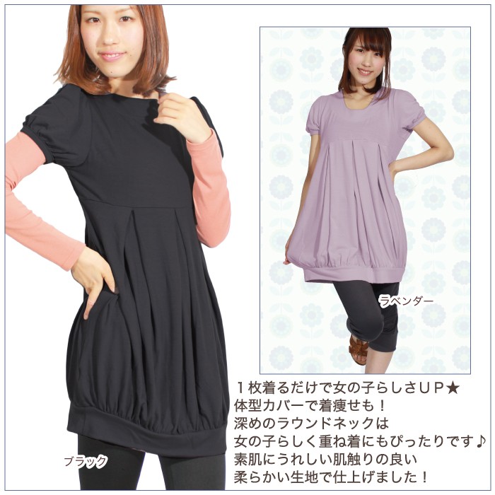 【ワンコインセール】チュニック ワンピース マタニティ ドレス パフスリーブ コクーン かわいい 半袖 無地