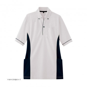 医療や介護などのメディカルケア向けの半袖ポロシャツです。左胸とバックサイドにポケットを追加し、収納力がアップしてさらに機能的になりました。サイド配色がシルエットをすっきりと見せスタイリッシュに着こなせます。