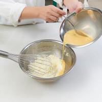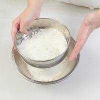 砂糖とバターを混ぜて卵と合わせ、小麦粉・ベーキングパウダー・トッピングをまぜて型に入れてオーブンで焼くだけ!レシピには注意点も書いてあります。