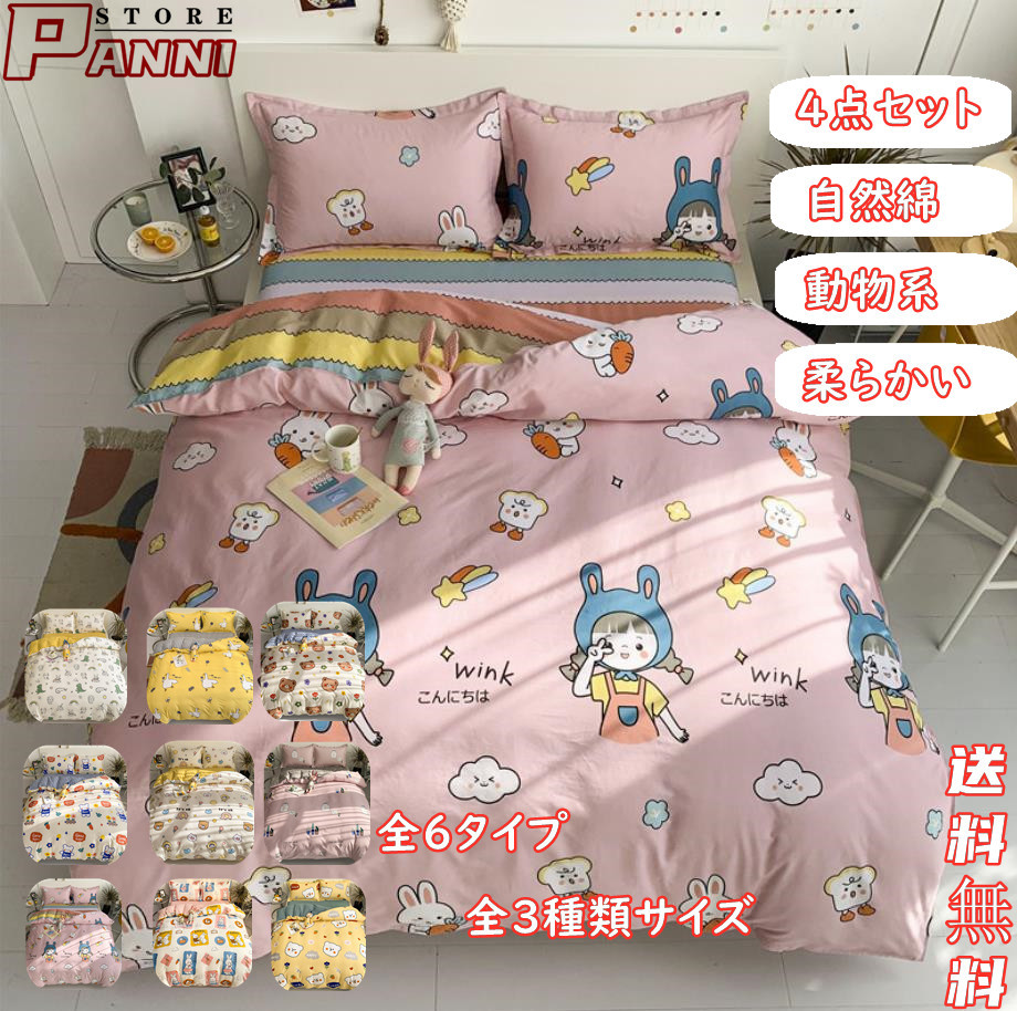 布団カバー 3点セット 4点セット シングル セット ベッドシーツ ボックスシーツ おしゃれ 寝具カバーセット 掛け布団カバー 敷き布団カバー シンプル 動物系