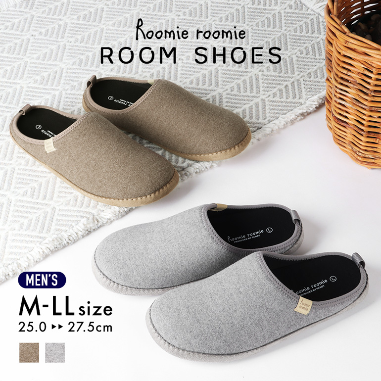 リラックスタイムに最適!ウール調のストレッチ素材を使用したメンズルームシューズ。クッション性のよいフットベッドインソールが足裏にフィット。
