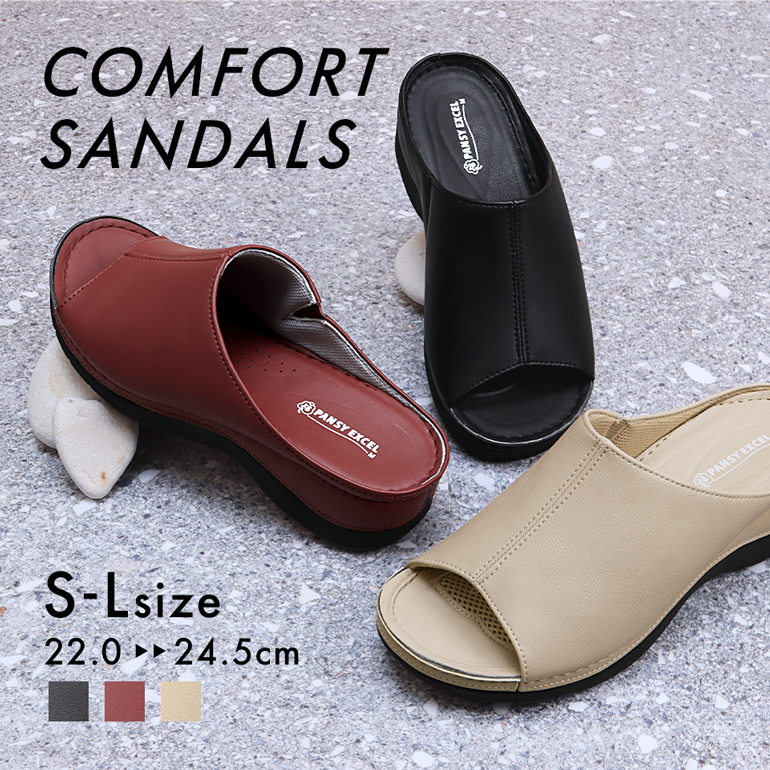 履き心地の良いコンフォートサンダル。インソールとアッパーが、ふんわりソフトで足あたり抜群♪玄関用からちょっとそこまでの外出にもピッタリです。