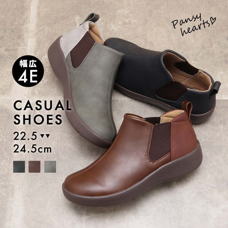 サイドゴア ゴム ブーティ 4E設計 4E ゆったり お出かけ 旅行 行楽 パンジー直営ショップ メーカー直営店