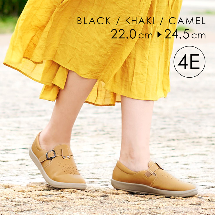 カジュアルシューズ スリッポン 4Eシューズ 22.0 疲れにくい 歩きやすい 履きやすい サポート 足に優しい カップインソール クッション性 黒 ブラック ブラウン 屈曲性 調整可能 ベルト 抗菌 防臭 母の日 パンジー直営ショップ メーカー直営店