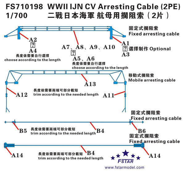 ファイブスターモデル FS710198 1/700 WWII 日本海軍 航空母艦用 着艦制動索(2シート)