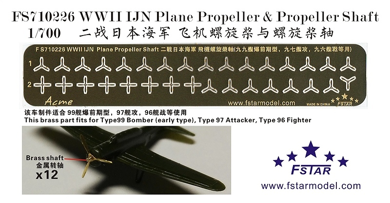 ファイブスターモデル FS710226 1/700 WWII 日本海軍 航空機用 プロペラ・シャフト (12個)