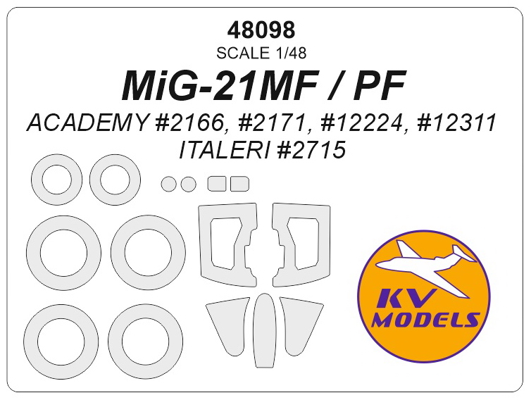 KVモデル 48098 1/48 MiG-21MF / PF (アカデミー #2166, #2171, #12224, #12311 / イタレリ #2715) +ホイール キャノピーマスキングシート