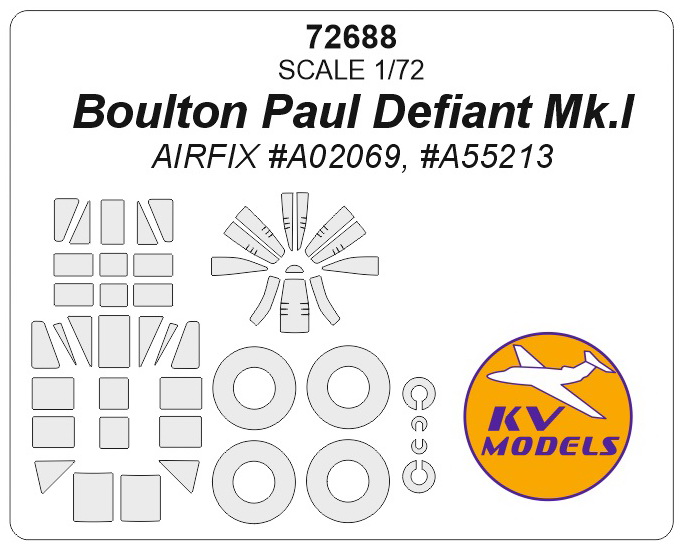 KVモデル 72688 1/72 ボルトン ポール ディファイアント Mk.I (エアフィックス #A02069, #A55213) + ホイール キャノピーマスキングシート