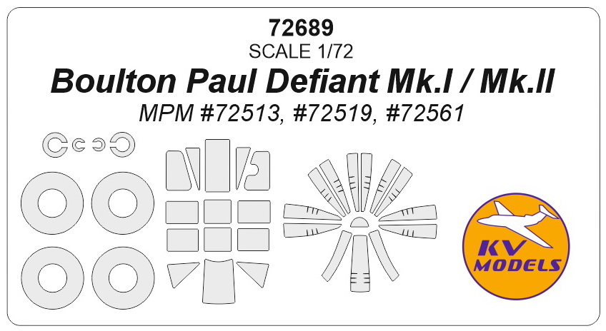 KVモデル 72689 1/72 ボルトン ポール ディファイアント Mk.I / Mk.II (MPM #72513, #72519, #72561) + ホイール キャノピーマスキングシート