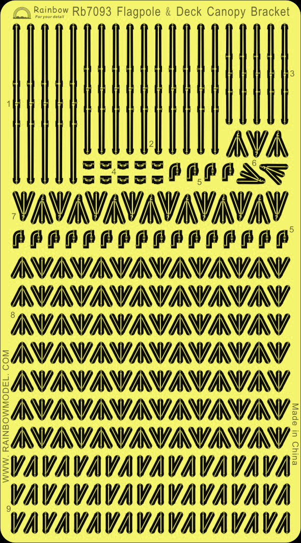 Rainbow Model Rb7093 1/700 Flagpole & Deck Canopy Bracket