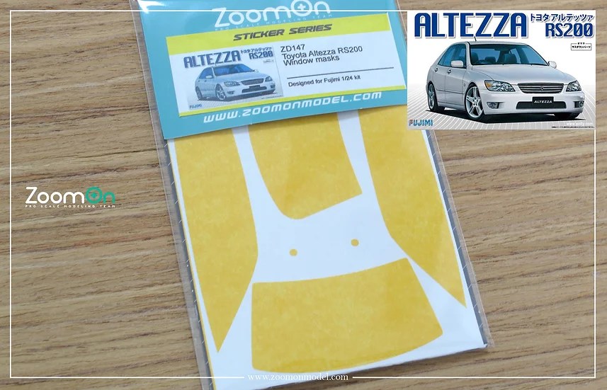 ZoomOn 1/24 Window & light painting masks -- Toyota Altezza RS200 - Designed for 1/24 Fujimi kit. -- 1 set of precut window & light painting masks.