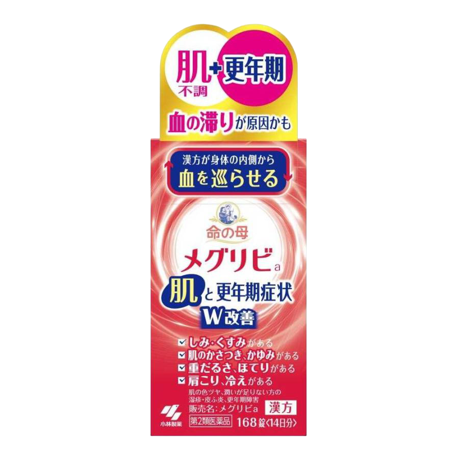 命の母 メグリビaは、更年期に起こりやすい心身の不調や、血行不良による肌トラブルを内側から改善する女性向け漢方製剤です。