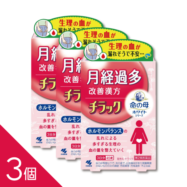 【3個】生理の経血量が多い・長引く方に『チラック 45錠』漢方の力で女性特有の不調を整える【小林製薬】【第2類医薬品】