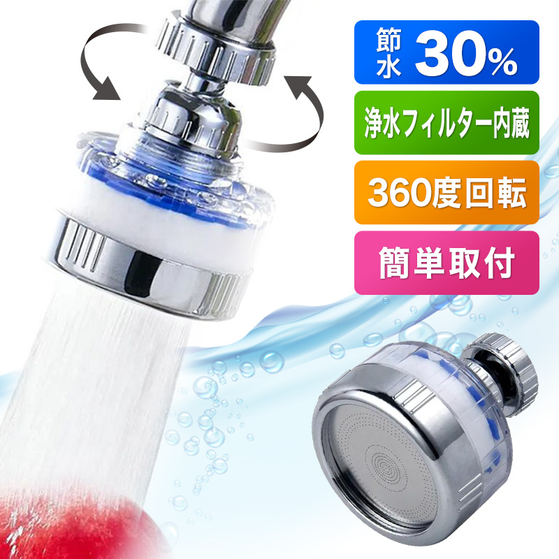 | 特長 | 首振り機能で吐水角度が360°調整できます。簡単にフィルターを交換できます。 |