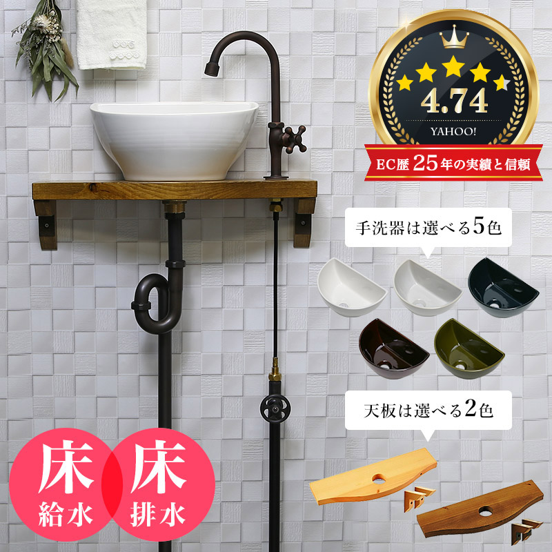 洗面ボウル 水栓 セット 天板 給排水部材一式 (床給水・床排水) グースネック 立水栓 ブロンズ クレセント 小型 手洗いカウンター 小さい コンパクト