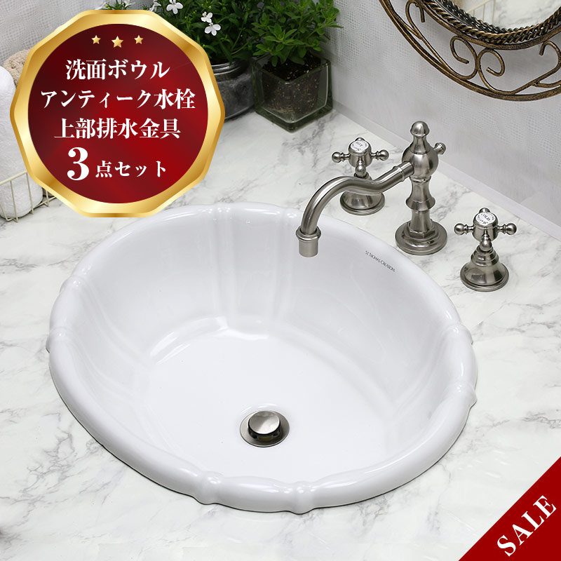 蛇口 洗面ボウル おしゃれ Matildaスパニッシュ・キャッスル(ニッケル) アンティガ洗面器 上部排水ユニット 3点セット