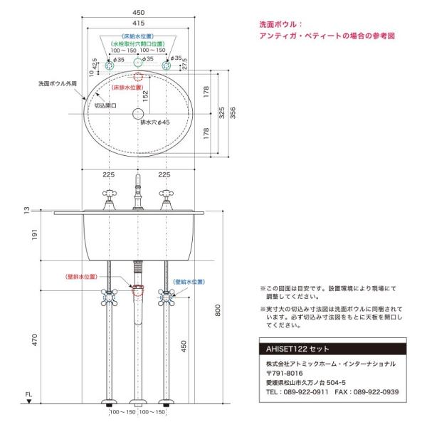 この商品は「蛇口・手洗器・排水口金具」の3点セットです。※天板カウンター・天板固定用アングル・排水トラップ管・止水栓は商品に含まれません。
