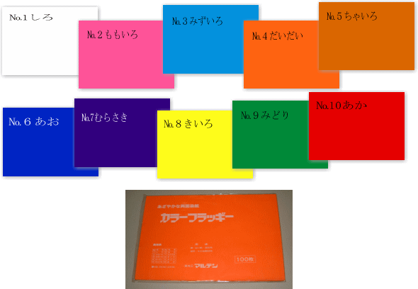 ☆旗・貼絵・折紙・その他教材に。 ☆カラーフラッギー プルダウンメニュー10色からお選び下さい。 |