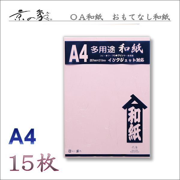 京の象 OA和紙・A4判 おもてなし和紙・桃色 雲竜紙(多用途・インクジェット対応) 15枚 2-810B ポスト投函配送対