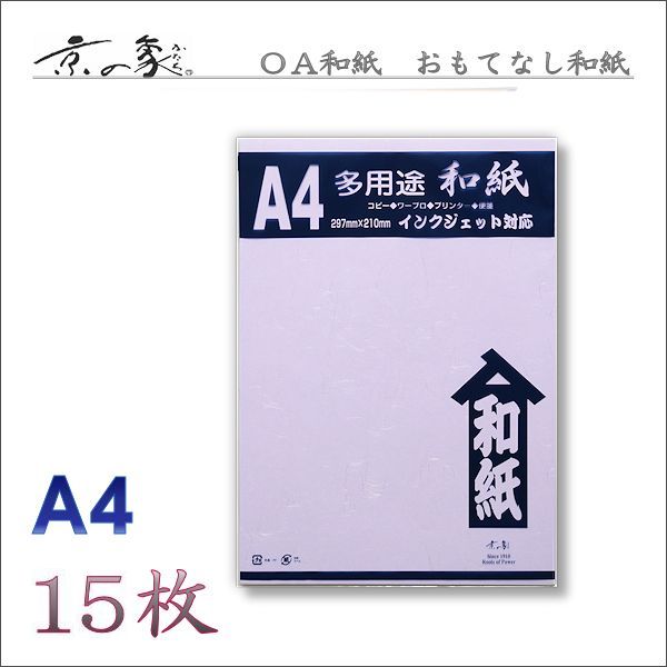 京の象 OA和紙・A4判 おもてなし和紙・藤色 雲竜紙(多用途・インクジェット対応) 15枚 2-825B ポスト投函配送対