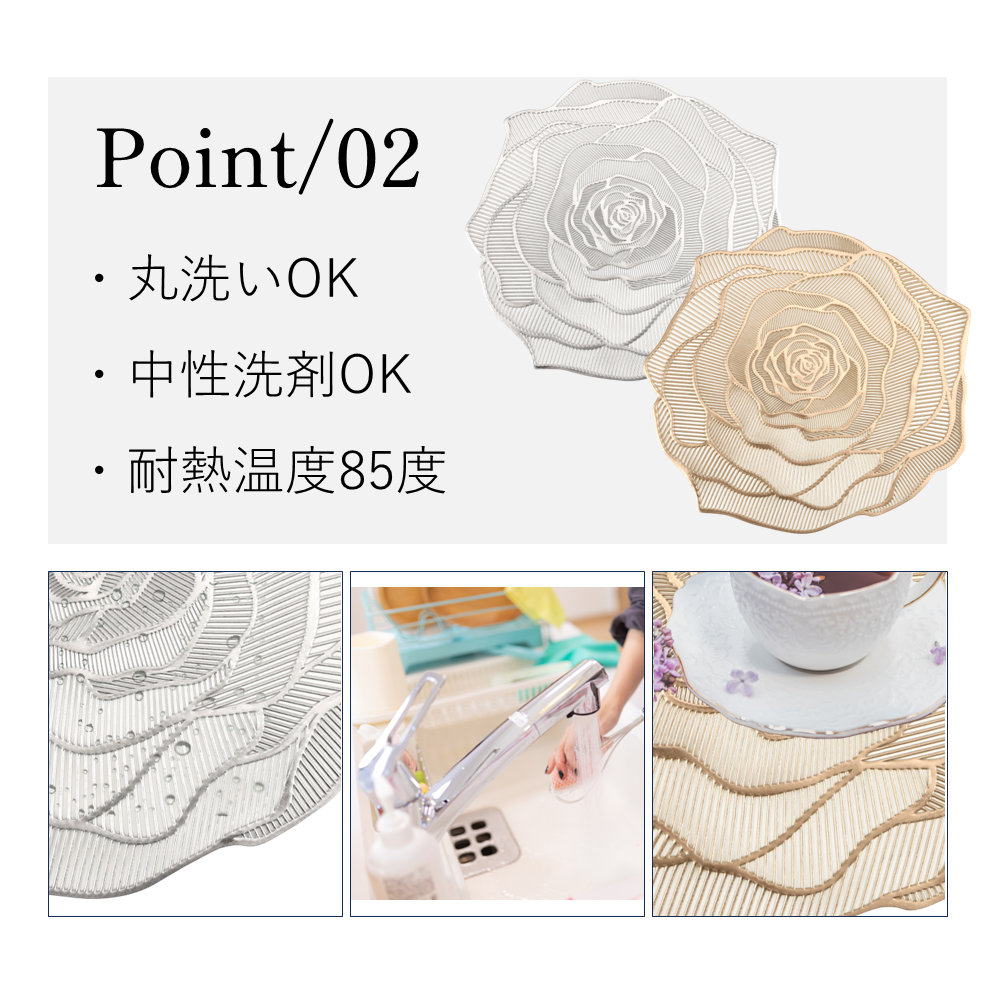 花瓶やコーヒーマシンの下などに敷くことができ、幅広い用途にご使用いただけます。PVC素材で耐久性に優れ長く使えて、お手入れも簡単です。